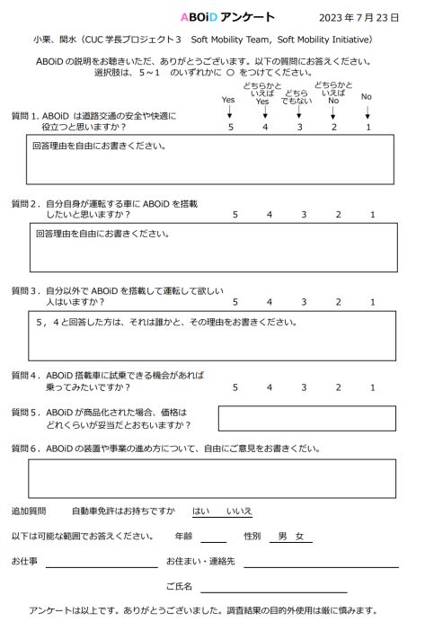 - 「ABOiD が安全な運転に役立つか」に全員が肯定的な回答